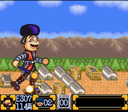 En amérique, on a seulement eu le premier Goemon au Super Nintendo, il a fallu ensuite attendre la N64 pour avoir d'autres jeux de la série, et c'est dommage, Goemon c'est vraiment qualité et Goemon 2 est un jeu assez différent du premier, qui ajoute des éléments Super Mario World-esque au tout et des délires de mechas qui varient le gameplay sans échouer avec des mini-jeux chiants. Ce que j'ai surtout aimé, c'est l'antagoniste, cet espèce d'américain/européen blond mauvais otaku qui est vraiment la parodie la plus méchante et stéréotypée qu'on peut faire d'un américain/européen (il s'appelle McGuiness, il serait irlandais donc?), c'est super.